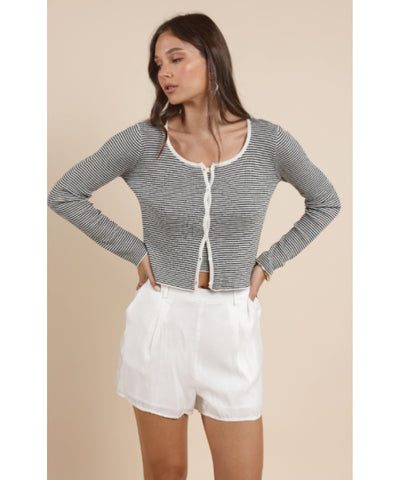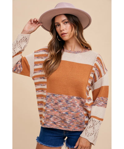 Layla Knit Sweater Boat Neck Contrast Seam Sweater