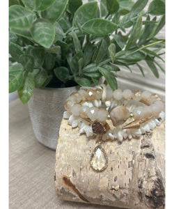 Metal Cross & Stone Stretch Bracelet - Pink Multi