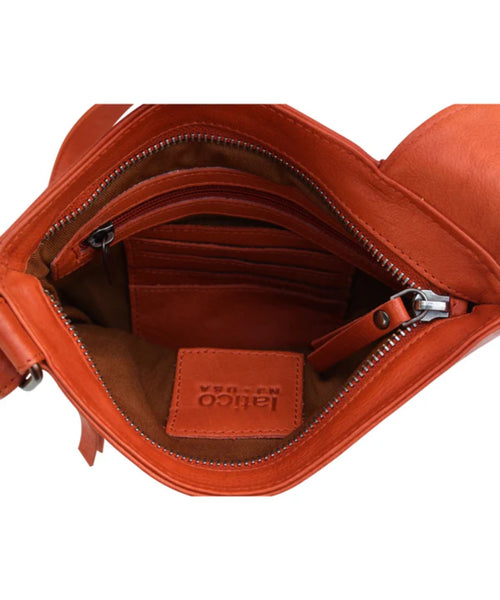 - Sleek styled crossbody with three exterior pockets - one zippered, two open