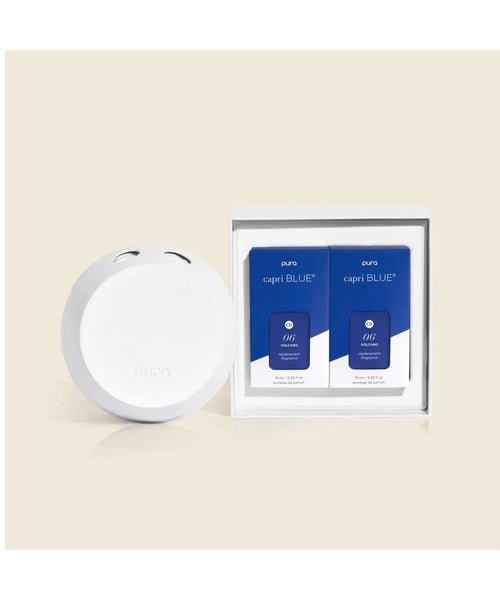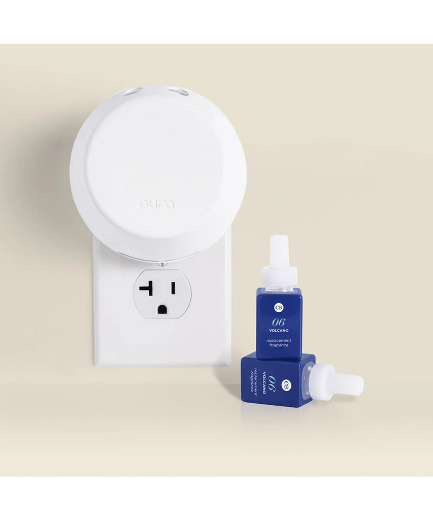 - Includes: 1 Pura Smart Home Diffuser + 2 Capri Blue Volcano Fragrance Vials (0.33 fl oz/ea)