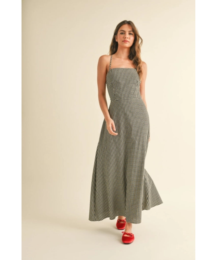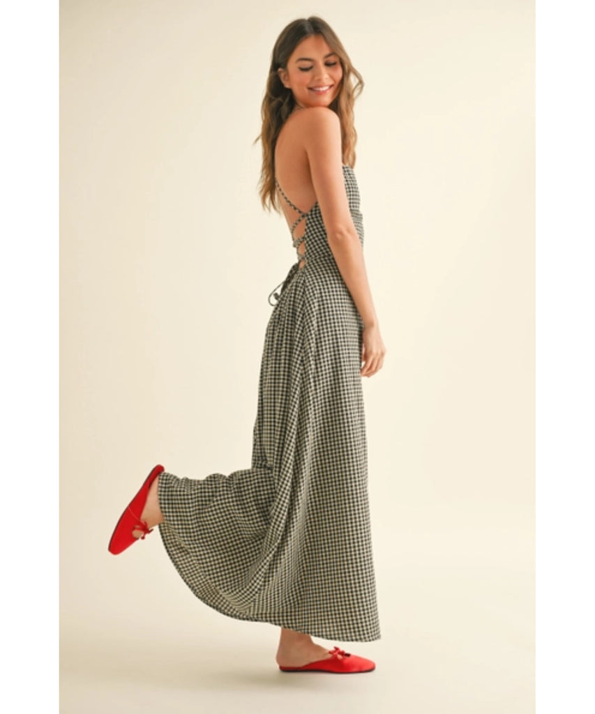 This charming maxi dress features a delightful gingham print that's perfect for any occasion. The strappy back design adds a flirty touch, while adjustable straps ensure a custom fit that works for your body. Whether you're heading to brunch or a garden party, this dress brings effortless style with a dash of whimsy.
