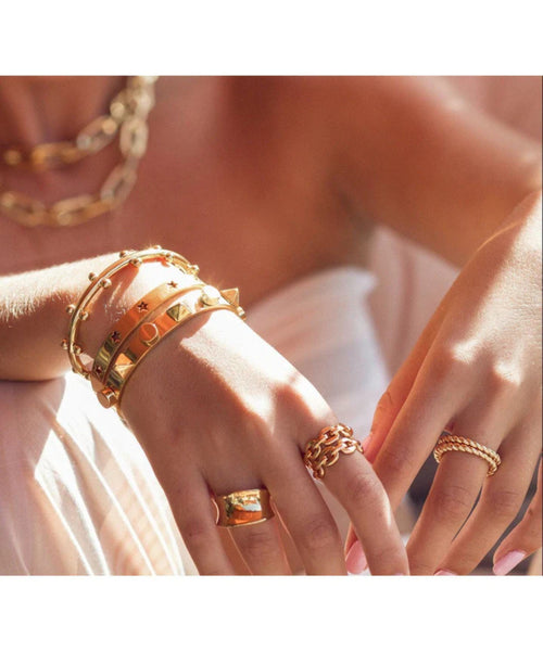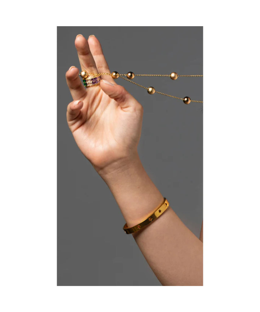 Our star bangle is perfect for layering with any other bangle or chain bracelet. Perforated stars all around.