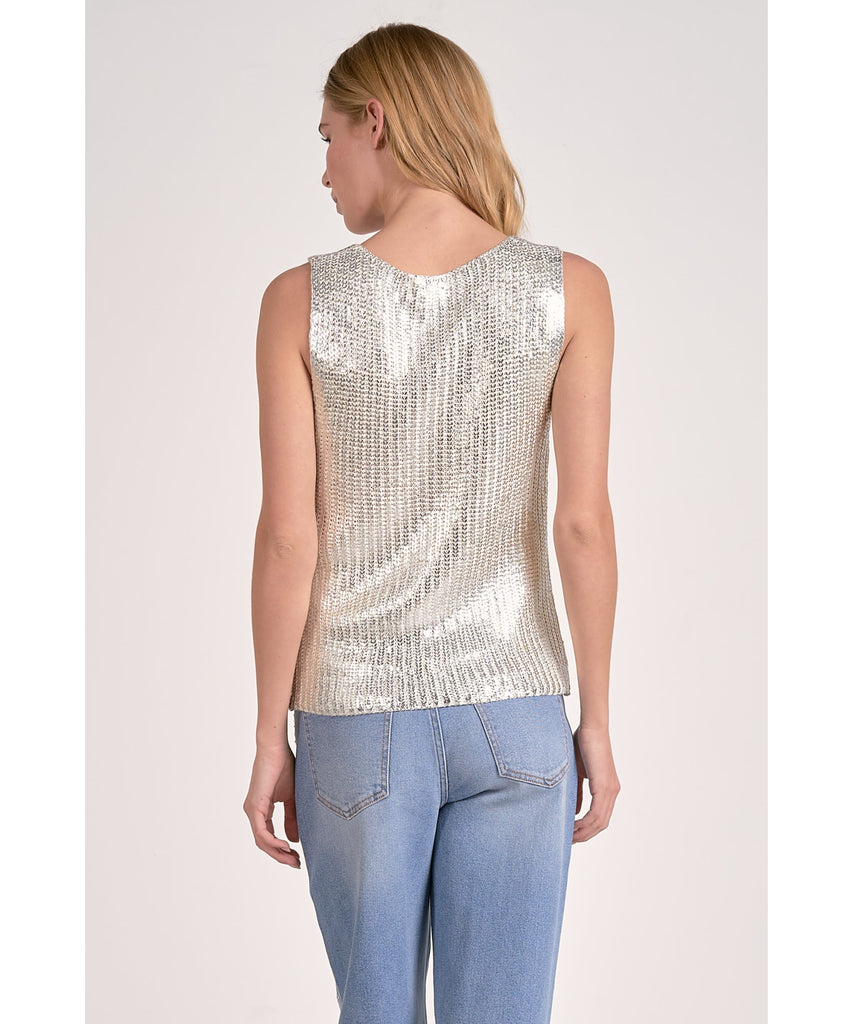 Elevate your wardrobe with this refined silver knit tank, where lustrous coating meets contemporary design. The sleek silhouette delivers understated sophistication, making it an ideal layering piece or standalone statement for elevated everyday styling.