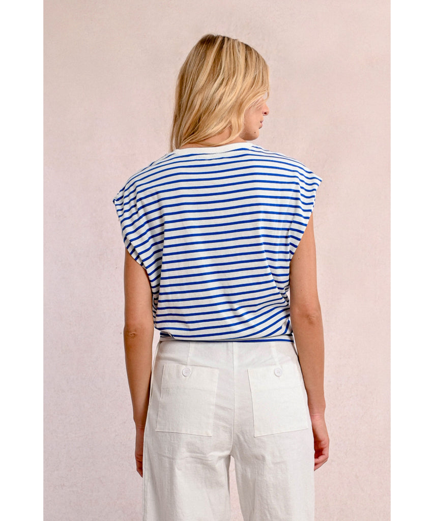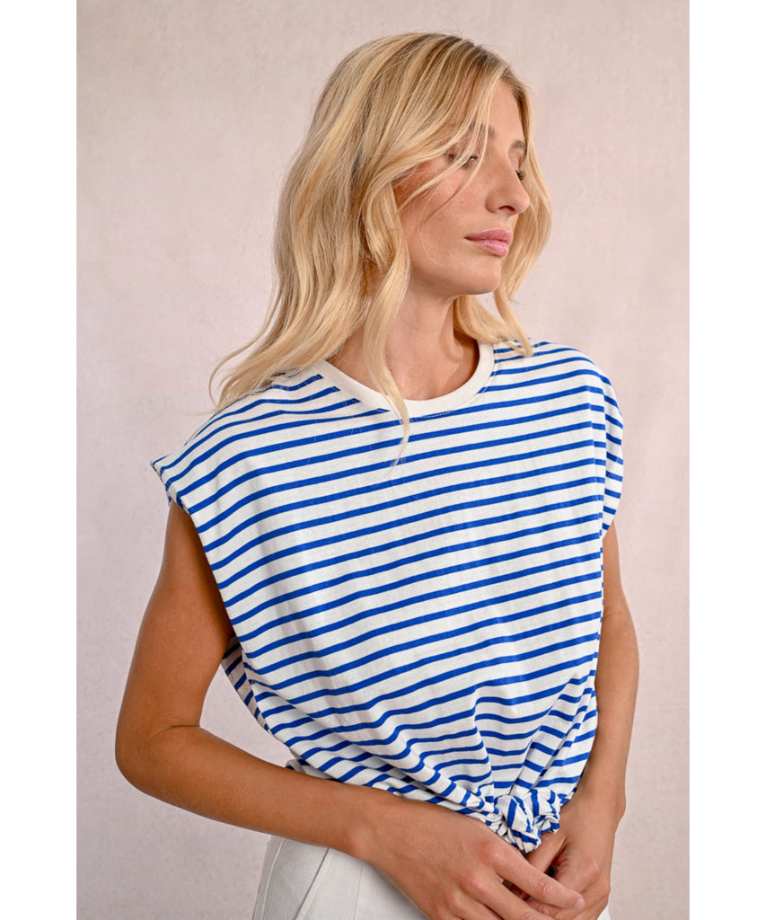 The cutest tie front top with cap like sleeves that have a lovely little detail and stripes.