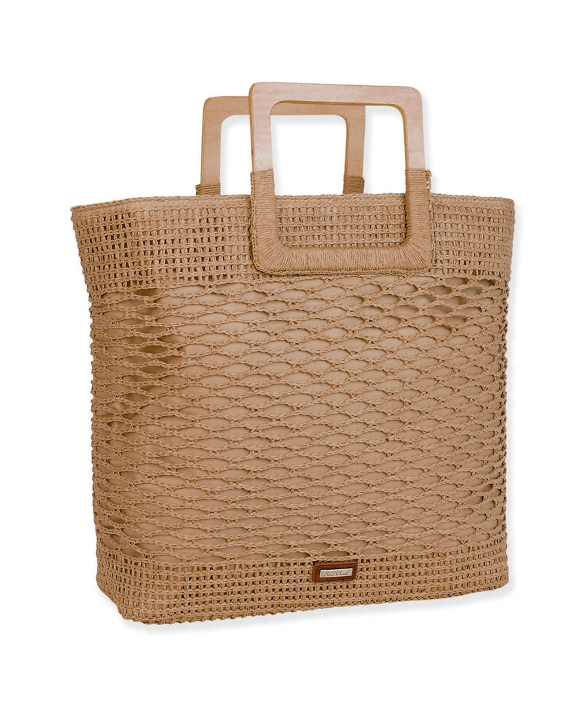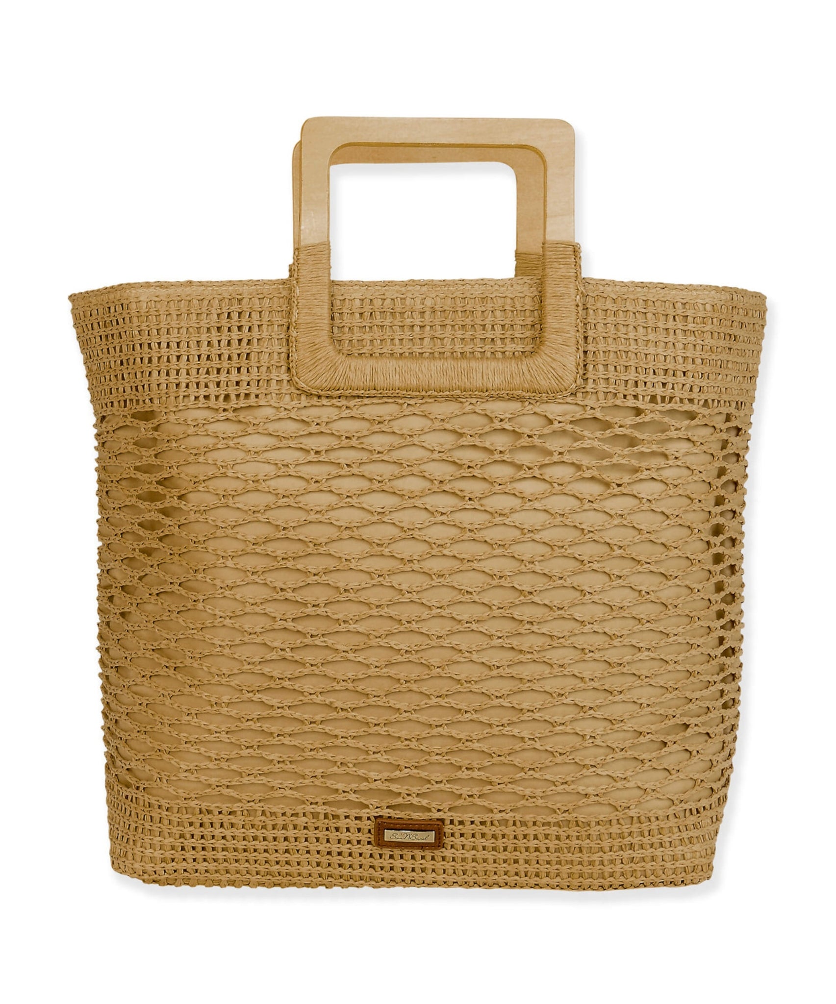 Tan, Paper Crochet Shoulder Tote | Size: 19.75 x 6.5x 15